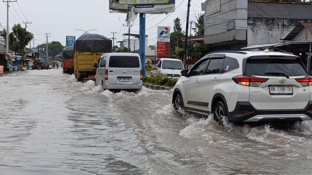 Hingga malam hari, genangan air masih menutup sebagian ruas jalan. Warga dan pengguna jalan diimbau tetap waspada, mengurangi kecepatan kendaraan, serta mematuhi arahan petugas demi keselamatan bersama. (Ary)