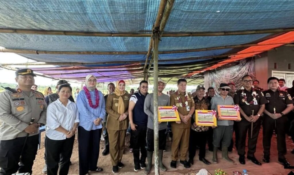 Selanjutnya, Bupati Riza Herdavid memberikan apresiasi kepada para petani Desa Bukit Terap yang telah bekerja keras mengelola lahan hingga menghasilkan panen yang membanggakan.