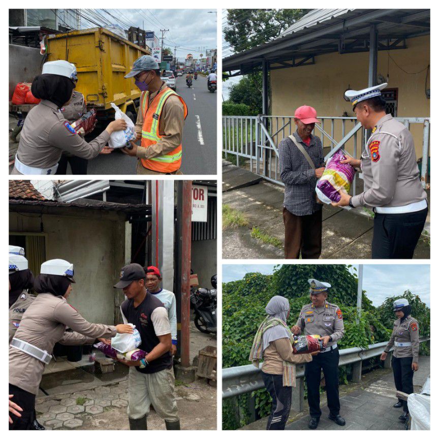 “Termasuk ada juga kita bagikan sejumlah paket sembako yang merupakan hasil dari sedekah personel kita di Ditlantas,” sambungnya.