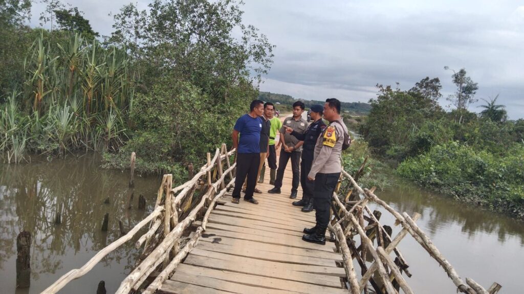 Polres Bangka Barat melalui Polsek Kelapa bersama personel Brimob Polda Kepulauan Bangka Belitung, melakukan pengecekan lokasi rencana perbaikan jembatan penghubung Desa Mancung dan Dusun Belit, Kamis (4/12/2025).