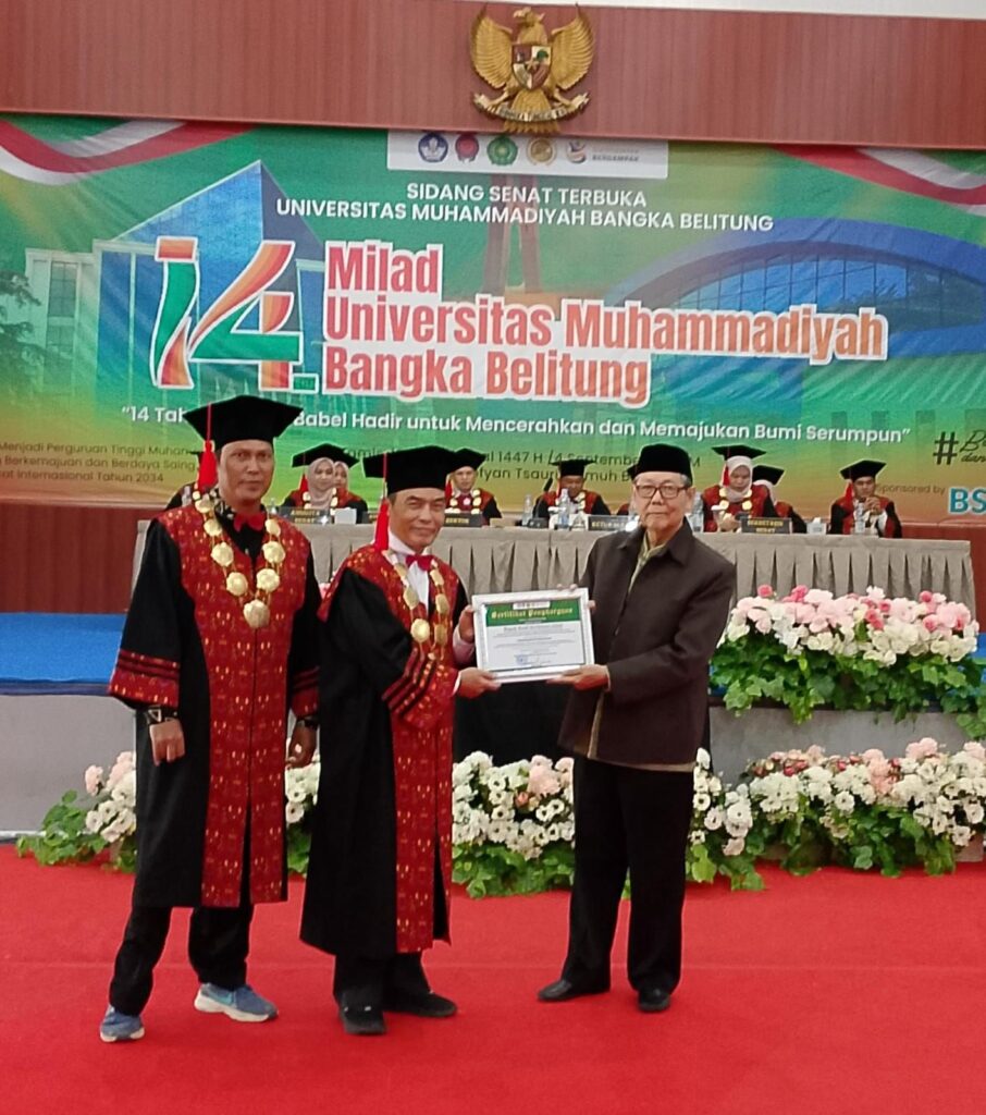 Pangkalpinang, Faktamediababel.com – Universitas Muhammadiyah Bangka Belitung (Unmuh Babel) merayakan hari jadinya yang ke-14 dengan penuh semangat dan refleksi. Mengusung tema *“14 Tahun Universitas Muhammadiyah Bangka Belitung Hadir untuk Mencerahkan dan Memajukan Bumi Serumpun”*, perayaan ini ditandai dengan Sidang Senat Terbuka yang digelar di Auditorium Sofyan Tsauri, kampus Unmuh Babel. Kamis (4/9/2025).