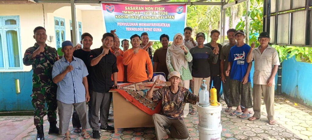Bangka Selatan, Faktamediababel.com — Dalam rangka menyukseskan program nonfisik TNI Manunggal Membangun Desa (TMMD), Satgas TMMD bekerja sama dengan Dinas Lingkungan Hidup Kabupaten Bangka Selatan menggelar pelatihan pembuatan pupuk organik bagi masyarakat desa di Pulau Lepar. (5/3/26).
